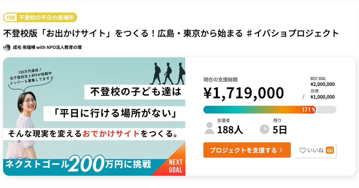 ↓不登校版「お出かけサイト」をつくる!広島・東京から始まる ♯イバショプロジェクト