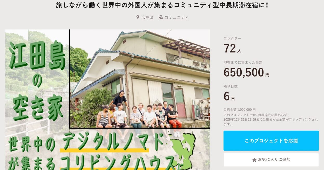 “旅しながら働く世界中の外国人が集まる場を江田島に!!”