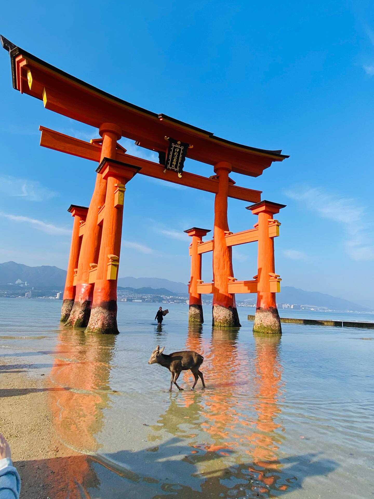 \ 厳島神社大鳥居と鹿とまっすぐ笑っ/
